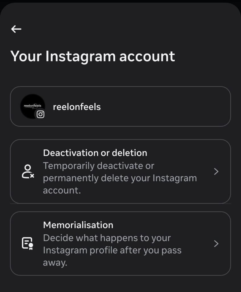 You will see an option: permanently delete or deactivate your Instagram account